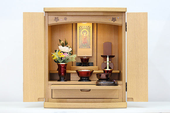 きくやでご葬儀をされたご家庭には、新盆を迎えるにあたり、ご自宅飾りをご案内しております。商品は直接お届けし、設置のお手伝いまでさせていただいております。他社にてご葬儀を執り行われた場合でも、お気軽にご相談ください。